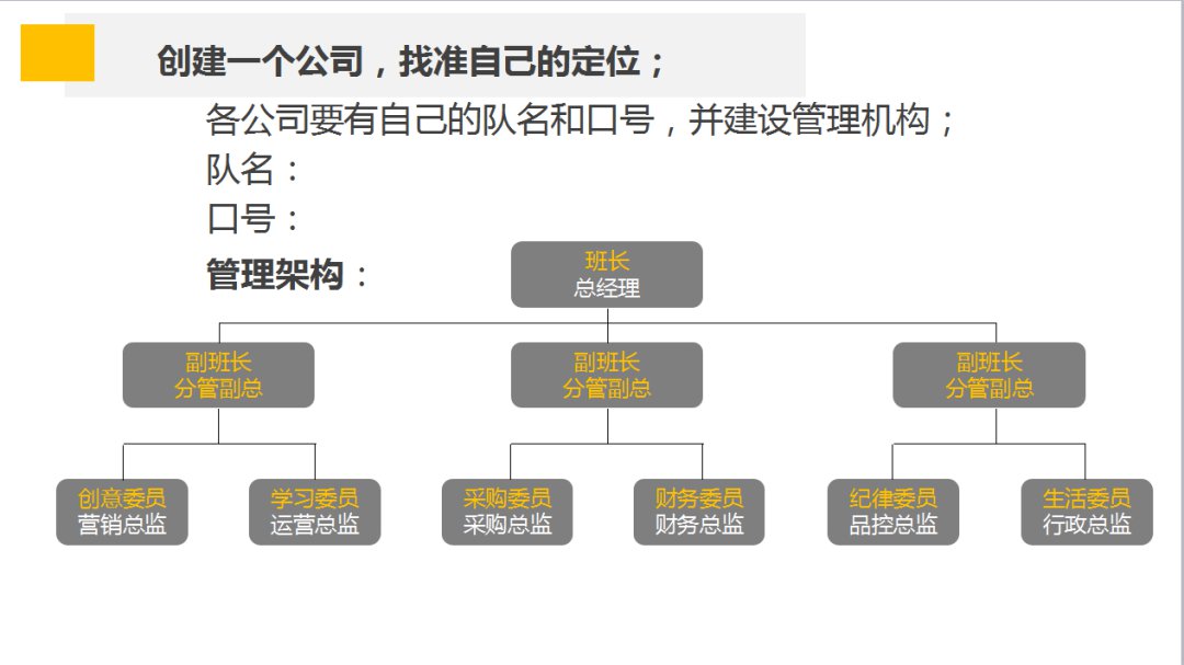 此次课程,分数代表的是各“公司”的营业额,而分数的获得途径有:课堂纪律、才艺表演、好人好事、团队整体精神风貌、士气展示、作业质量。因此,各“公司”成员必须为了最终的营业额冠军而团结协作,切实做到“思想统一、目标统一、行动统一”。