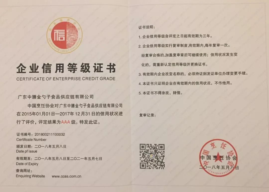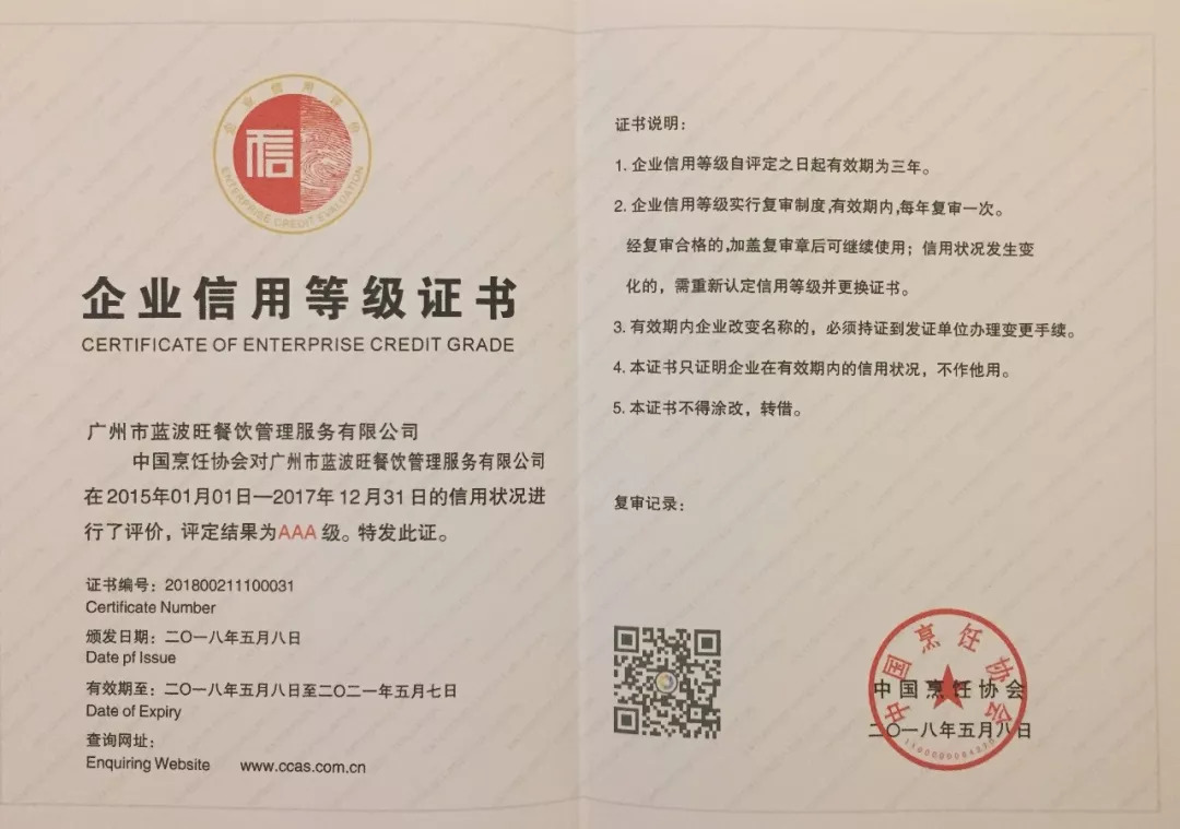 全国AAA级信用企业:广东多多28健康产业科技有限公司、广州市蓝波旺餐饮管理服务有限公司;广东多多28金勺子食品供应链有限公司。