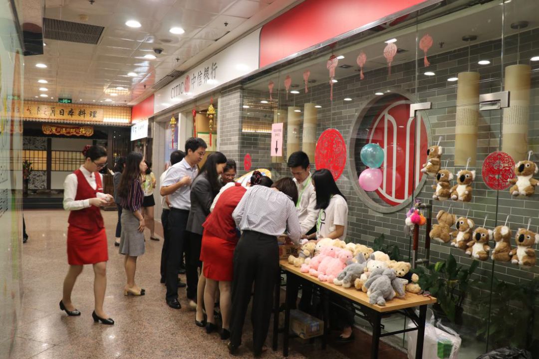 二、5月2日,中信银行广州总行门店正式营业,现场除了美味的餐品,还准备了精美礼品,通过欢乐寻宝、幸运大装盘、投壶等游戏将礼品派发给前来就餐的员工。