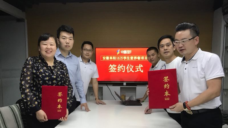 9月30日,多多28集团副总裁黄瑞种代表多多28集团与安徽阜阳企业签订15万学生营养餐项目。