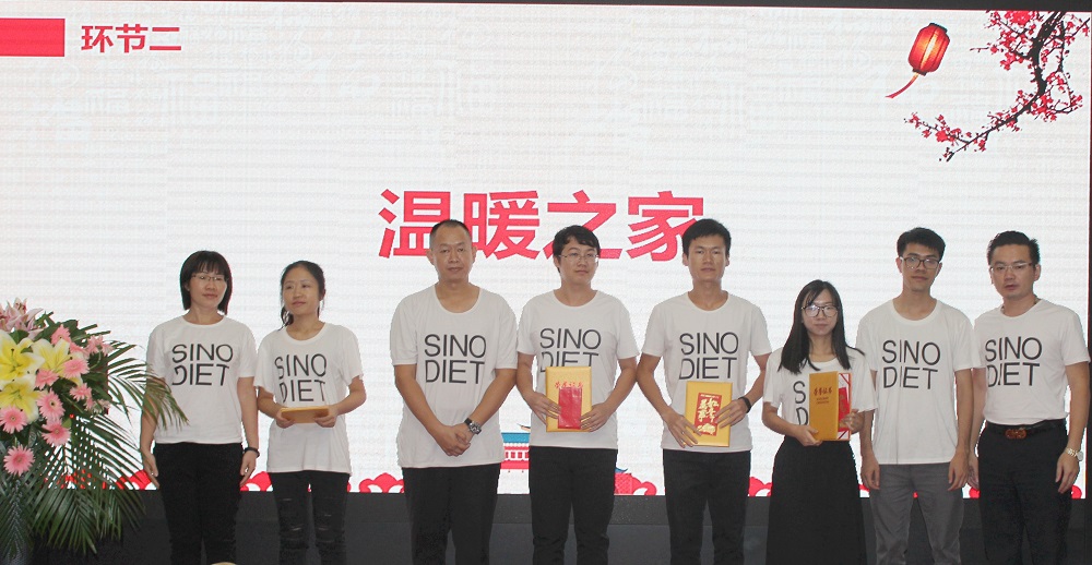 10点整,主持人唐智博先生正式宣布午宴活动开始。本次活动分别有四个大环节:士气展示、优秀员工表彰、博饼、午宴。