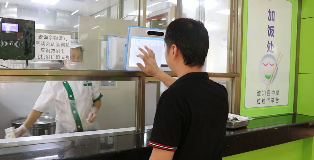每个窗口都装有一台带与电脑极为相似,带有摄像头、可以触屏操作的机器;只需站在它面前一秒,就能读出姓名、余额和套餐类型等信息。待确认信息无误之后,点击“确认”即可完成结账,整个过程所花费的时间不超过8秒,从此告别团餐食堂大排长龙。