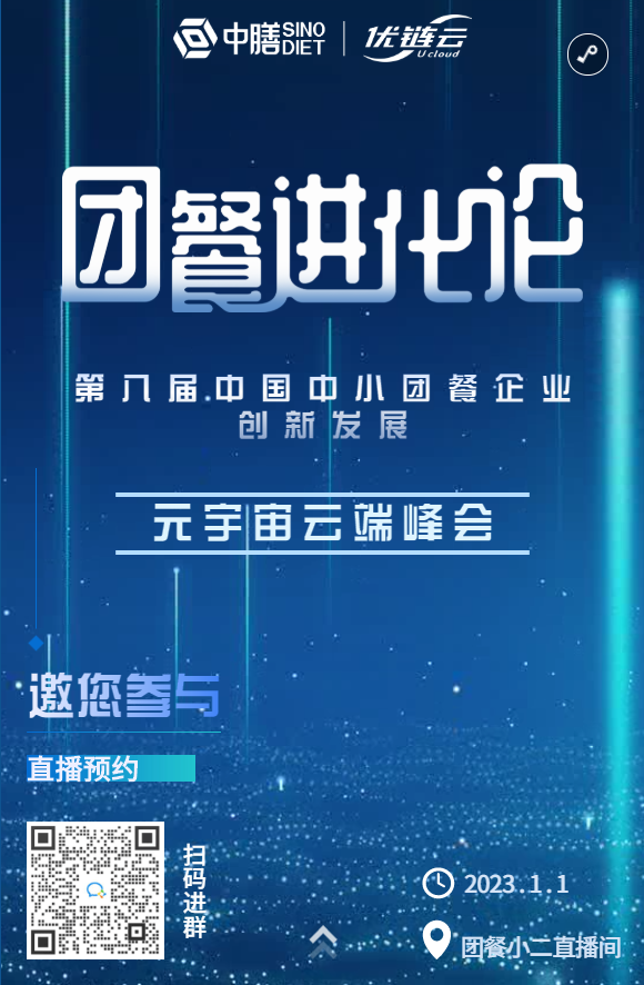 第八届中国中小团餐企业创新发展高峰论坛将于2023年1月1日举办,本届论坛将以“团餐进化论”为主题,邀请团餐行业头部企业掌门人、专家学者,资本投行就行业风口和热点话题进行交流研讨。