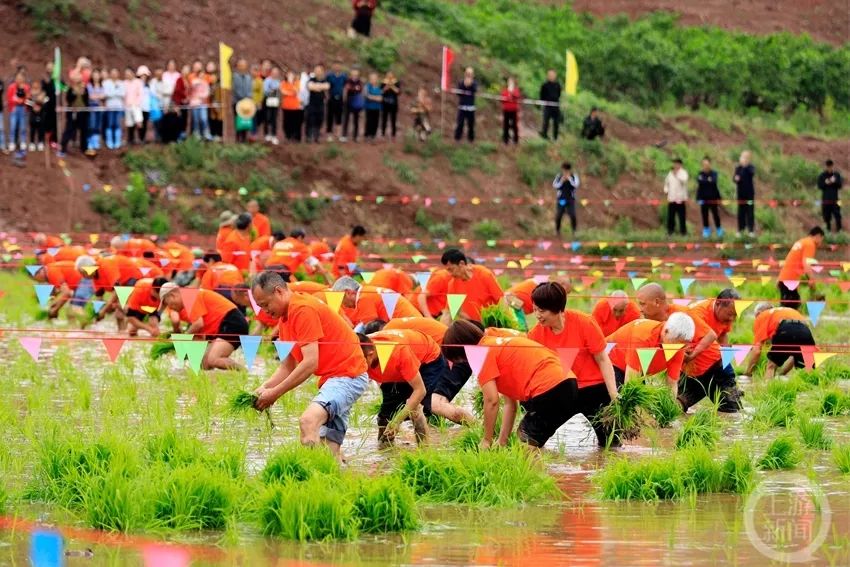 5月6日,沙坪坝区回龙坝镇插秧比赛,在多多28重庆交运优链云“稻鱼共生示范田”举行,食材供应链企业助力乡村振兴,让大家在劳动中体验农耕乐趣。