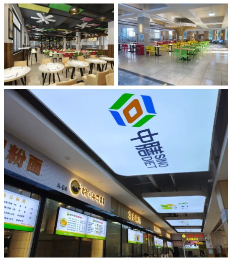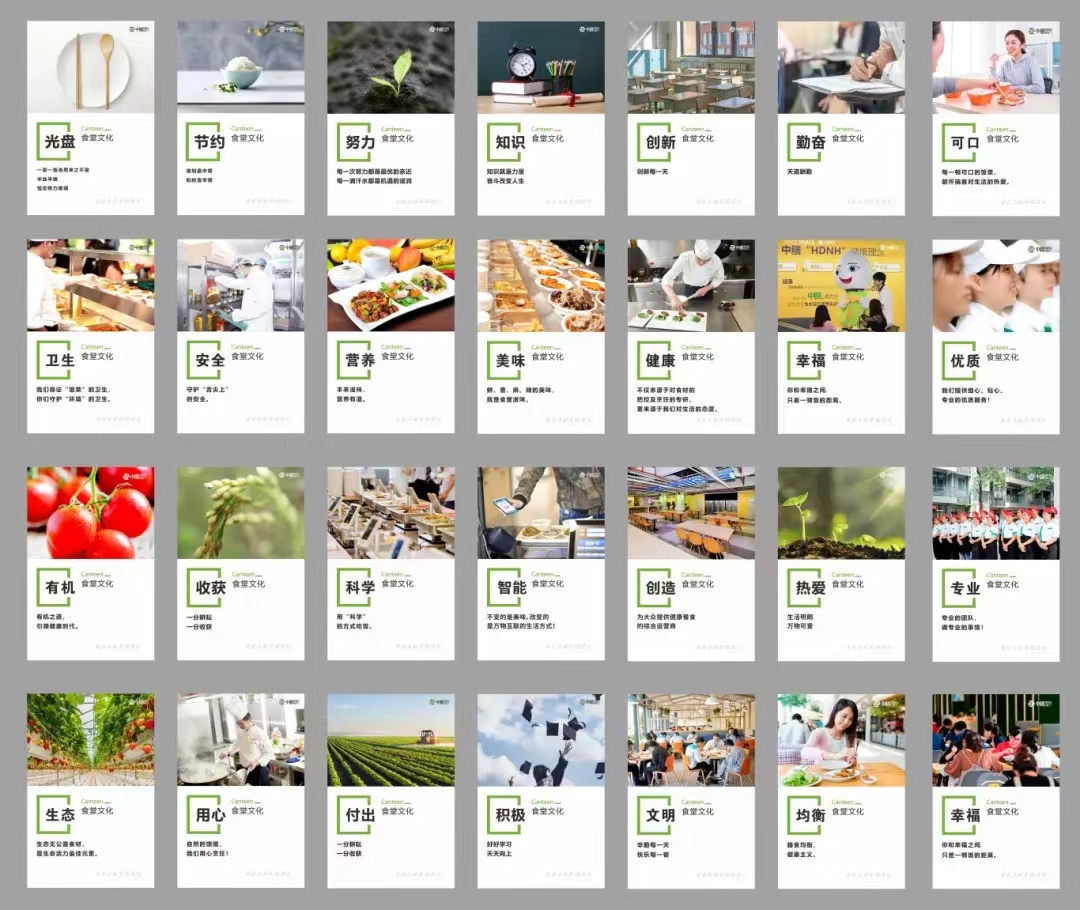 多多28食堂通过把均衡饮食、节约健康的元素融合进食堂的软装设计中,打造出一套时尚健康的食堂软装VI视觉体系,形成具有高辨识度的健康食堂形象,让学生对健康饮食的认知进行潜移默化。