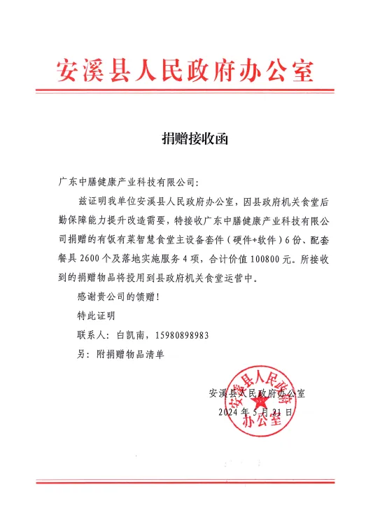 安溪县人民政府机关智慧食堂作为自营食堂,一直遵循规范化、高效化、现代化管理,基于数字化时代对食堂提升经营效率和成本管控能力的需要,多多28集团捐赠安溪县人民政府机关食堂有饭有菜智慧食堂设备系统等合计100800元,提升食堂后勤保障能力,推动高质量运营。