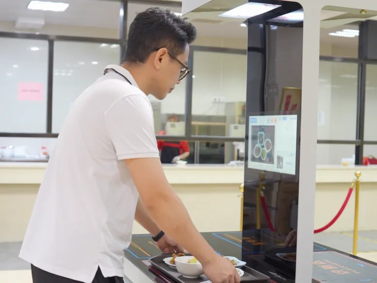 安溪县人民政府机关食堂应用有饭有菜AI视觉识别结算台,就餐人员从窗口取餐、智能识别菜品、计价、人脸识别结算,全程自助,一气呵成,自助结算只需3秒!